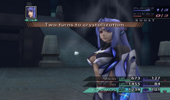 Every time KOS-MOS appears to be down, T-elos focuses on Shion, and KOS-MOS gets a second (third… fourth…) wind.