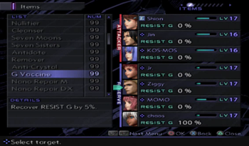 Note that you can use a G Vaccine to vaccinate your party against the crystallization. In a fun bit of story/gameplay synergy, chaos naturally has permanent 100% immunity. He can handle gnosis just fine, remember?