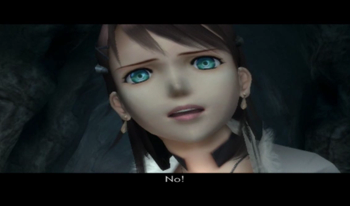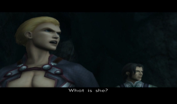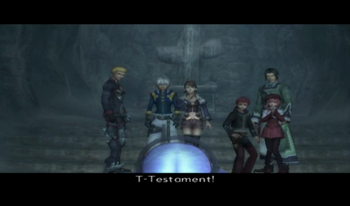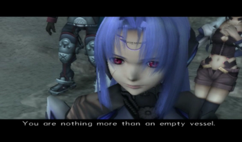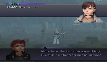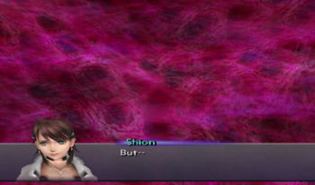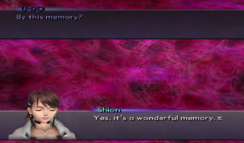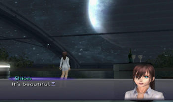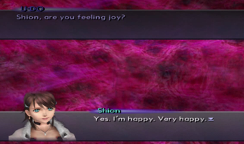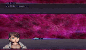 This is a very important bit of dialogue. Unfortunately, it’s kind of soiled by the fact that it looks like Shion and U-DO got caught in some kind of infinite loop. Maybe this was originally supposed to be the Xenosaga musical number?