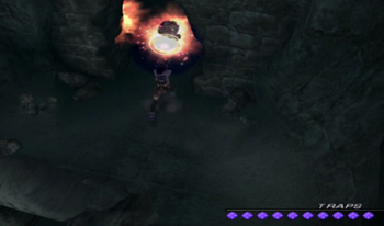 Back up into the open air that somehow exists here. Blast some rocks and you’ll find the way forward.