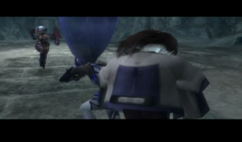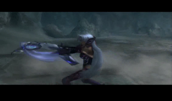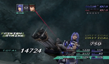 Post battle, the “canon” end of the fight is… KOS-MOS using her gatling gun. In the LP biz, we call this “looking like you know what you’re doing”.