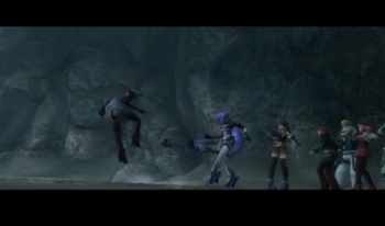 At this point, the rest of the party is still looking at a smoking crater, so what gives, KOS-MOS?