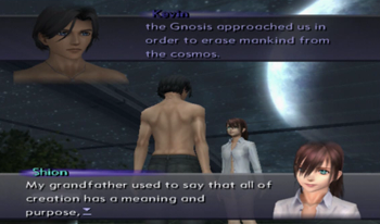 Again with the surprisingly clever dialogue. Here’s everything you need to know about Shion and Kevin: Shion believes everything, even the gnosis, has a purpose. Kevin thinks the only thing the gnosis want is wanton destruction.