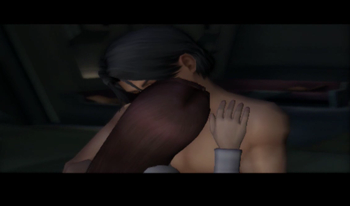 What we have here is an obvious flashback to Shion and Kevin back in happier, mostly naked times. Incidentally, I really appreciate the outfits they chose here. These things are always subjective, but post-sex “she’s wearing an oversized shirt, he just grabbed some pants” seems very real to me… for… no particular reason.