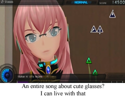 And, while I may have been quietly disrespected by the lack of Vocaloid background beyond “Hatsune is dedicated” or “Rin is eccentric”, I got by. This was an excellent rhythm series, so who cares if the main character is as flat as a chalkboard? What’s important is the experience and the songs! You don’t need a story mode in a rhythm game!