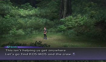 So… forest dungeon. Wee. The point of the UMN, from a gameplay perspective, is that it allows Xenosaga to have a “holodeck”. We started the entire franchise in “a simulation of a ruined 20th century city”, and since then… Have we had many dungeons that couldn’t exist in any other generic JRPG? We’ve somehow had three nonspecific forests in three games! If we get another basic cave, I am going to scream.
