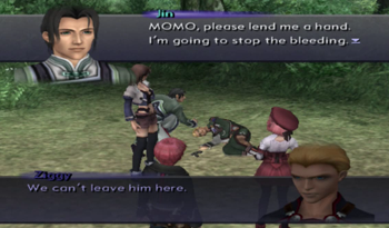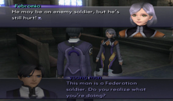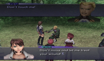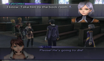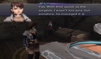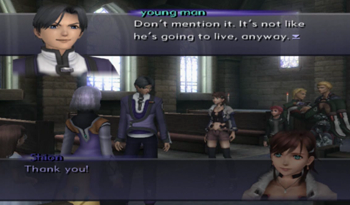 So originally Virgil crawled his way to the church on his own (I guess without The Brews to defeat the Realians, he may have been pursued as far as Feb flower picking), and it was Teenage Kevin, not Jin, that performed the surgery, probably with much more whining involved. Welp, that fills in that little plot hole! … Wait, why didn’t Kiddy Shion recognize time-displaced Jin in our timeline?