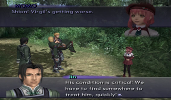 The party actually makes note of Virgil being a Testament (reminder that Shion is the only one here that ever met “alive” Virgil), but Shion insists that they help their future enemy. Past enemy? Damn time travel.
