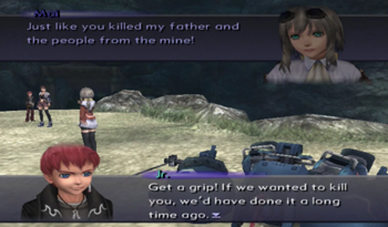 Spoilers, but Mai dominates this little quest, and then she quickly fades into the background. She will be involved in one totally optional and rather speedy sidequest, and then she’s never seen again. Does she die with the rest of Old Miltia? Does she go on to help build giant robots? Does she have an adult counterpart in the “present” of Xenosaga? Who knows, and Xenosaga doesn’t give a flip.