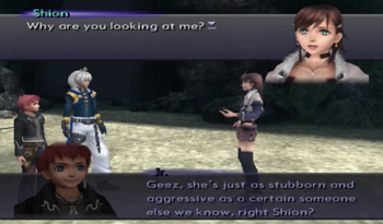Good to see that Shion has the skill of basic facial recognition. Ya know, for being so anime, I do have to give Xenosaga credit for having distinctive characters, as opposed to just “big eyes, small mouth, different hair color” all day long.