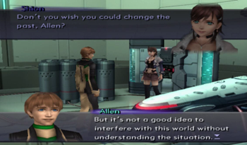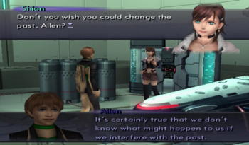 We have a lot of fun at Allen’s expense here at the Xenosaga LP, but I have to say, I would probably be Allen in this situation. “We’ve gone back in time? Oh my God, don’t anybody touch anything!”