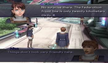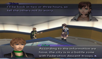 Previously on Xenosaga: Is it the 50’s? Or 1999? Nope, it’s fifteen years ago, and The Brews have inadvertently time traveled back to Old Miltia shortly before its destruction. Now Allen’s favorite onesie store won’t be open for another decade!