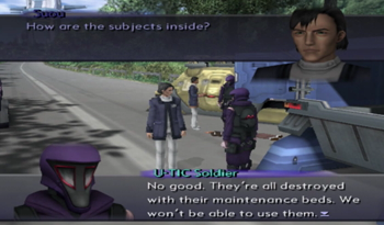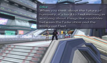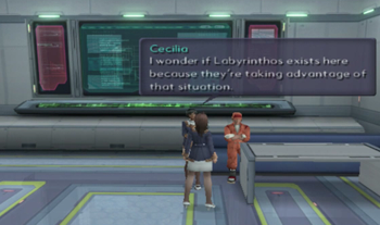 Random NPC Cecilia suggests that U-TIC and Labyrinthos are taking advantage of the number of Immigrant Fleet “test subjects” on this planet (and specifically in this city). I guess Cecilia is the only woman on the planet paying any attention.