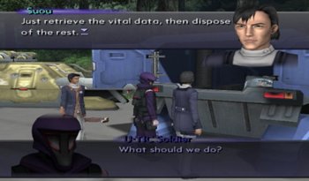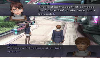 I like that the Federation apparently predominantly uses an “artificial” army. Realians are weak to The Song of Nephilim, so normal types like Virgil have to be deployed.