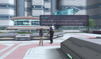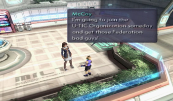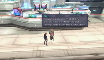 It’s a town, so there are a number of NPCs milling about with their scripted opinions. U-TIC is treated as a bunch of thugs…