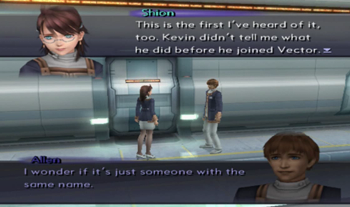 To maybe ease the “retcon” and Shion’s faulty memory, Allen comments that he’s never heard of Kevin’s previous employment under the head mad scientist of the galaxy. You really think that would warrant a mention.