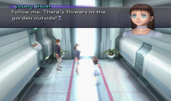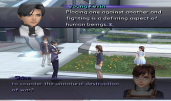 But we see that same parallel we saw with adult Shion and Kevin in their engagement flashback. Kevin naturally believes in war and fighting robots, Shion believes in planting gardens and loving every non-Allen creature in the galaxy.