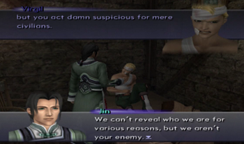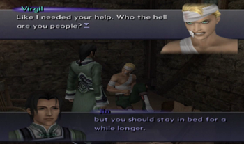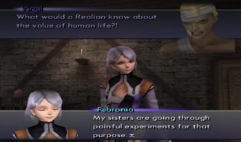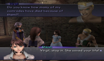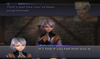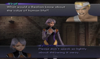 Virgil rather starkly attempts to repel Feb’s kindness with “ya know, I kill Realians, right?” Feb takes it in stride.