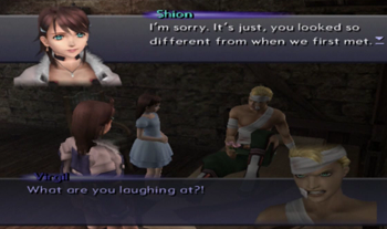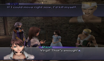 Virgil is suicidal at the prospect of all this compassion. If Kiddie Shion fires up an episode of My Little Gnosis, he’s going to keel over right here.