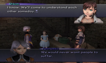 Feb wants everyone to live in peace. Good for her! She also makes reference to Cecily and Cathe, the two most doomed Realians on a planet full of ‘em.
