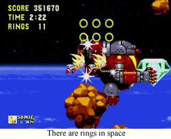 StH3&K is a hybrid game. In the beginning, there was simply Sonic the Hedgehog 3, and it was good. Then Sega begat Sonic and Knuckles, a game with hitherto unforeseen lock-on technology, which allowed the two games to combine into one shining gestalt of a gigantic adventure. Once combined, the two games allowed the player to play through every level in both games, collect double the chaos emeralds (well, technically the same number of emeralds, the emeralds just got bigger), and play the stages as Sonic, Tails, or Knuckles, all with slightly different gameplay styles. This effectively made Sonic the Hedgehog 3 & Knuckles (the completely combined form) its own game separate from both Sonic the Hedgehog 3 and Sonic & Knuckles.