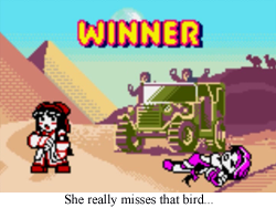 • Flappy sadLimitations: Nakoruru of Samurai Shodown appears without her trademark hawk, probably because the NGP has a hard enough time rendering two fighters, left alone tossing a bird in there. Mamahaha does show up for a few attacks (and assisted flying), so it’s not all bad.