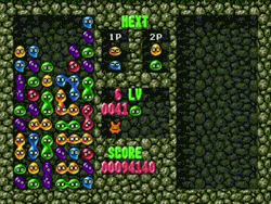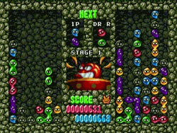 - Maybe actually talk about the game for a second: It’s Puyo Pop. It’s a match-color game. It’s practically Dr. Mario. It’s also really difficult for some reason. Like, the second stage is already pretty rough with piling the garbage blocks on the player.