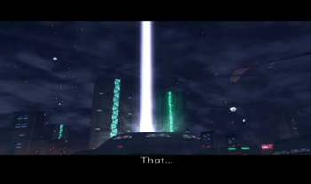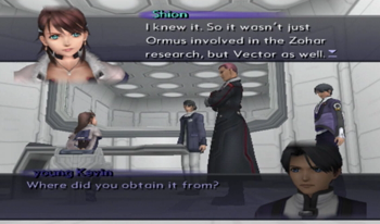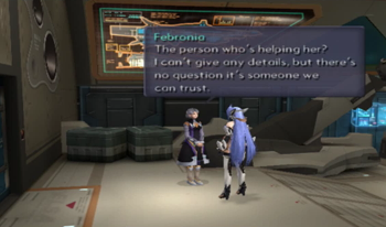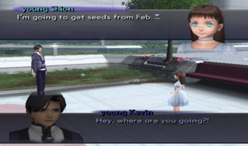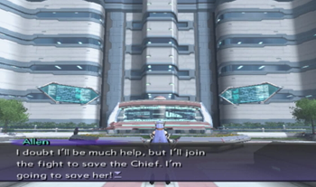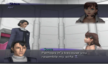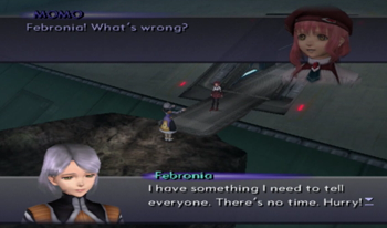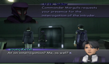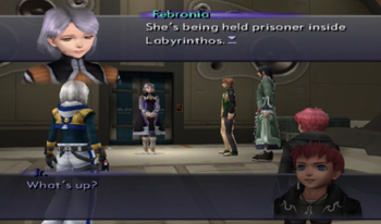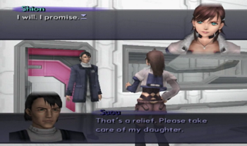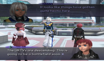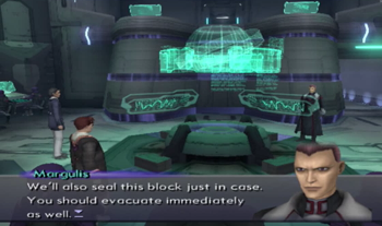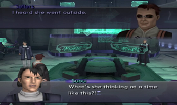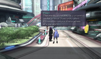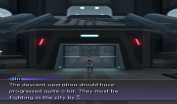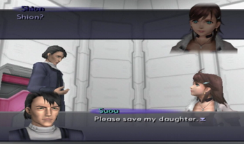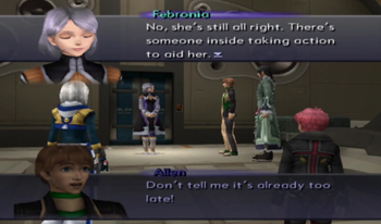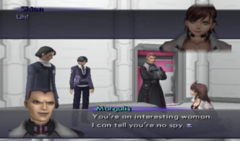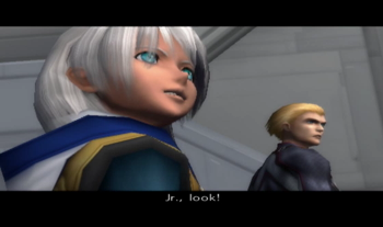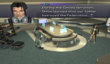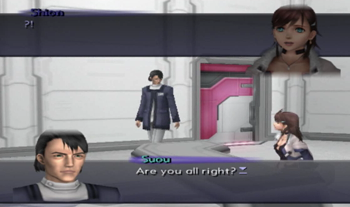 Deez (love your ancestor’s photoshops!) greets you on your final visit to the Miltian Capital City. This is your last chance to enjoy the final town in the Xenosaga franchise. Well, before it’s on fire.