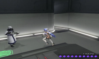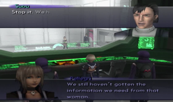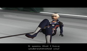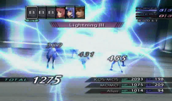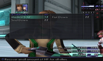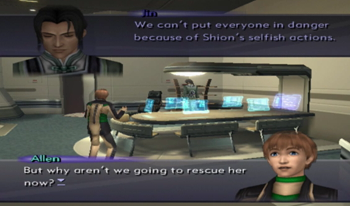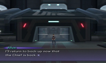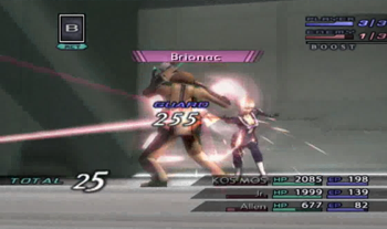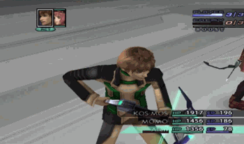Pellegri boss fight. This is the first we’ve fought her on foot, and she’s flanked by two surprisingly resilient U-TIC soldiers. She’s weak to ice (Jin’s specialty), and Allen can actually come in handy in this battle, as he can be on break duty for the extra soldiers.