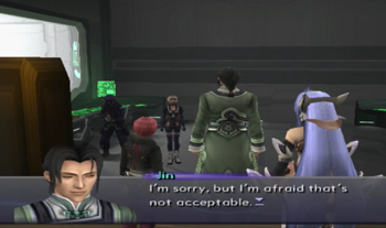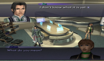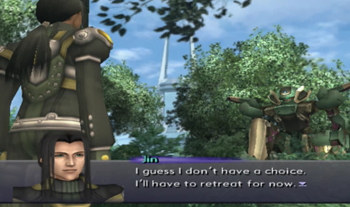 This is the first time in the trilogy (though not the anime) that Jin and Pellegri have been face to face.