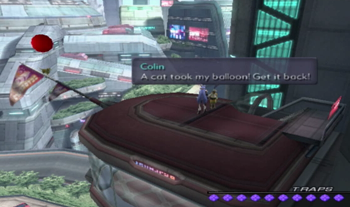 After gassing a defenseless kitten, you’ve got to “grab” the balloon, which involves smashing the circle button in the most finicky way possible. Hopefully you snag the balloon, else you have to exit and reenter the area to reset the “mission”.