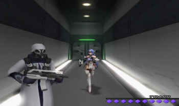 There are some AMWS wandering around. Remember when we had an ES to battle these dudes during the start of XS2? You can either punch hard metal, or avoid these encounters. Plenty of room to run.