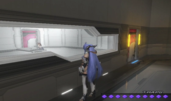 A little past that locale is a familiar room. The door is locked, but at least we can see Shion is alright. Guess those “ways of making you talk” got sidelined the minute Junior’s army showed up.