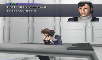 Aw, Suou is releasing Shion out of the pure goodness in his heart. … Man this guy is a terrible scientist.