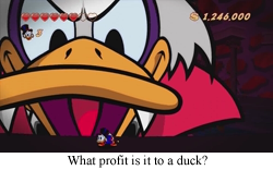 • Did you know? Alan Young and June Foray reprised their vocal roles as Scrooge McDuck and Magica De Spell for this game. They were born in 1919 and 1917, respectively. When they were born, there was barely the concept of “video”, left alone a “videogame”.