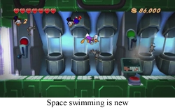 No swimming musicBut the remastered music is what got my attention. The music was composed by Jake Kaufman, a man who, by his own admission, was a giant fan of the original. “”I’ve heard this stuff in my head, as arrangements, since I was 10, so I knew exactly what to do…” That sounds about right. I reiterate that I am absolutely not a music guy, and I don’t know how to describe this, but Kaufman nailed the moon theme (and every other song, but that’s neither here nor there). Whatever Moon was trying to do on its tiny little NES speaker was taken to new, otherworldly heights on DuckTales: Remastered, and, for the first time ever in a videogame, when I first reached the moon stage on my initial play of DuckTales: Remastered, I put down my controller, and just listened. I’m pretty sure I bought the soundtrack about ten minutes later. Then I hit Continue because I accidentally let Scrooge get killed by aliens. I was distracted!