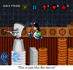 Maybe actually talk about the game for a second: This game is horrible. It’s a lesser B.O.B. (by the same designers), and seems to be only marginally related to the source material. Remember the part of the movie when Wayne gets shrunk down and fights sentient coffee cups with his magical guitar? NOT!- So, did you beat it? I consider finishing the first stage of this dreck to be an accomplishment on par with curing polio, so, no, I did not finish the entire game.