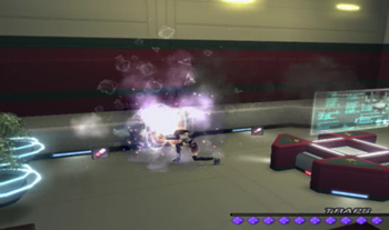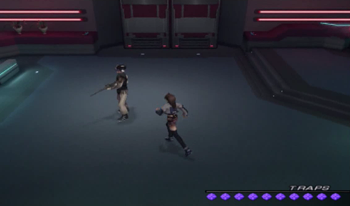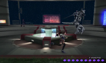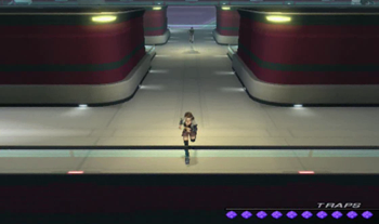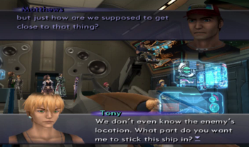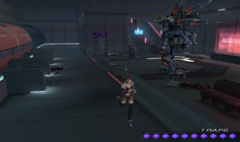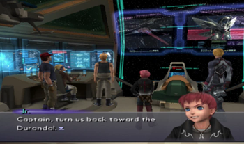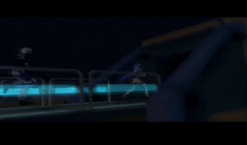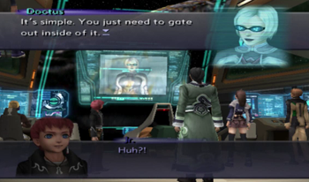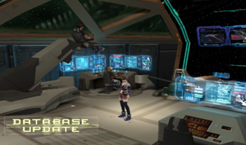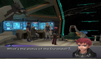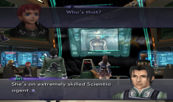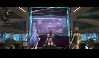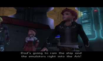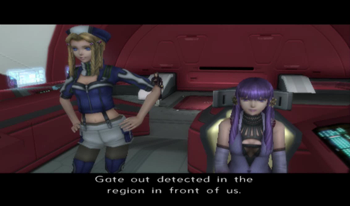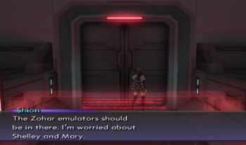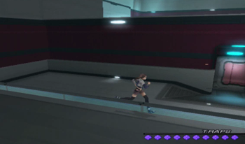 As you might be able to recognize, the dock area is exactly the same as it’s been since XS1. We haven’t been on this ship in anything but cutscenes since XS3 began, but most of the ship will be familiar to Xenosaga veterans (we’ve… seen things).