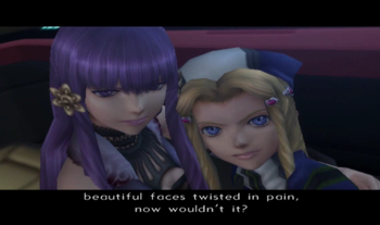Of course, they are literally the support staff for the main heroes. MOMO barely gets any development during this game, so what hope did Mary & Shelley have? We’ve got a giant, sprawling story as-is, so devoting time to two characters that are probably best known for outrageous accents isn’t the best idea. It’s completely understandable that Xenosaga didn’t wholly develop these two.
