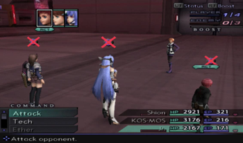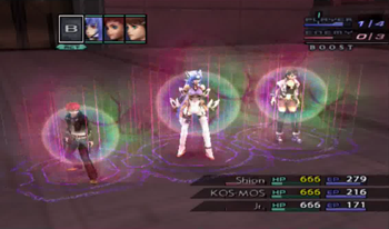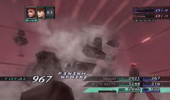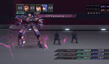 And while we’re revengencing some soldiers, let’s use KOS-MOS’s Level 2 Special Attack, X-Buster. Yes, that’s only her Level 2, so, after two games, we’ll finally gain a KOS-MOS attack more powerful than the tummy laser.