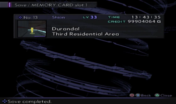With nothing else to do, it’s time to hit the Residential Area. There’s a savepoint right there, so let’s get a time check. 13:43, for anyone that doesn’t feel like reading the screenshot.