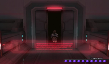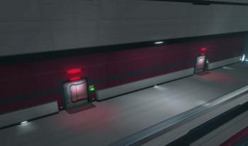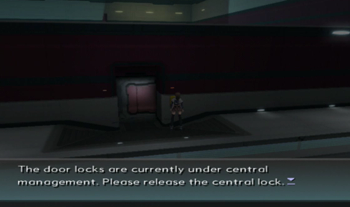 Here we go, the main door lock for the area. Uh… this doesn’t seem terribly safe. Couldn’t one of the bad guys have just pressed this big, glowing switch? No matter.