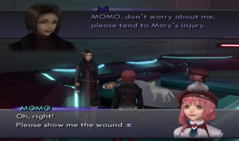 But, like the whole Xenosaga mutant concept, there was a lot of potential there, and, for all the interesting ideas introduced, nothing is ever accomplished. It’s telling that Mary’s wound is played as something potentially fatal… and then it’s resolved as “Oh, I’m fine” in an offhand scene ten minutes later.