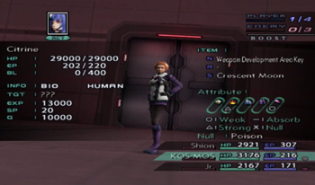 Citrine boss fight! Citrine is really fond of status effects, like how she started the battle here by sealing all of our Ether abilities. Luckily, every ailment in XS3 is just a Refresh item away from not making an impact.