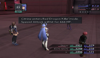 Citrine will use one attack that sets everyone’s HP to 666, and then her next attack will deal exactly 666 HP damage. Mark of the Beast is really getting a workout this update. Regardless, it’s a simple matter to use a heal-all spell/item to avoid death. Boost if you have to, but you have to restore a whole 1 HP to survive.