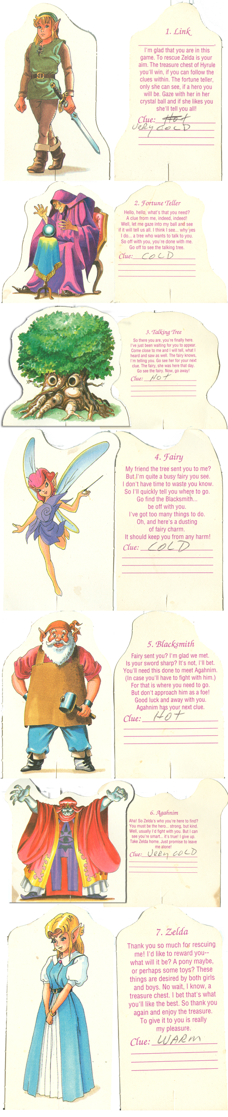 Here’s the deal: there are seven sequential Zelda characters to find. The idea behind the “game” is that you start with Link, who then tells you to find the next character (Fortune Teller), and then you gradually make your way to Zelda, who rewards you with a swank treasure chest that the Easter Bunny has presumably filled with jelly beans or something. In theory, this whole mission sounds like a pretty fun little Easter activity.