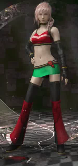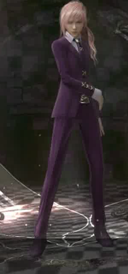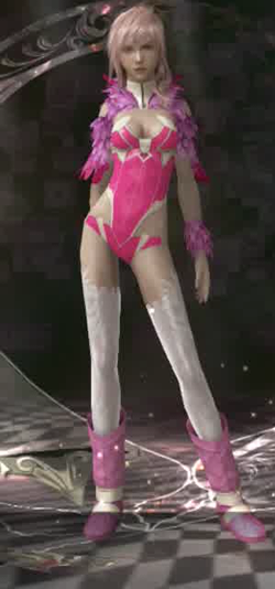 I guess this is kind of inevitable with any game where you, assumed to be heterosexual male audience, can choose the clothing for a heroine, but there is something… vaguely unsettling about the number of outright fetish outfits that wind up in Lightning’s closet. Not pictured but also available: schoolgirl, magical girl, underdressed white mage, and what can only be described as “sexy Big Bird costume”. And this isn’t a mix ‘n match situation, either, where you might just maybe happen to stick cat ears and a fluffy tail on a particular outfit; no, this is straight up “here player, we thought you might like your kickass heroine to be flashing her ass crack while she flips around the screen”. I don’t think that thought ever occurred to the designers creating alternate skins for Batman in the Arkham series.