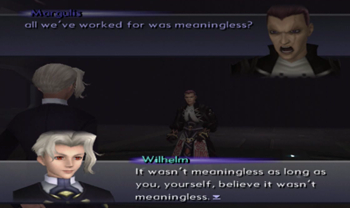 And the scene ends with Margulis stuttering and Wilhelm commenting that Margulis is still at least worthy to hang out in the final dungeon.