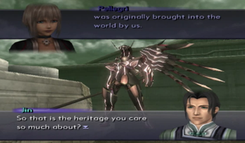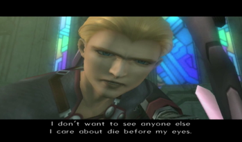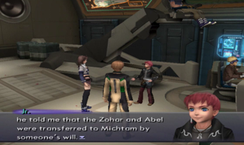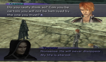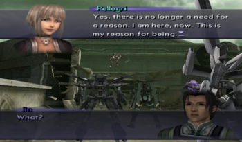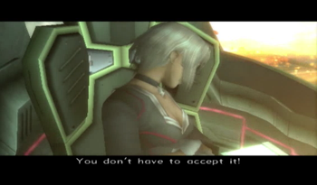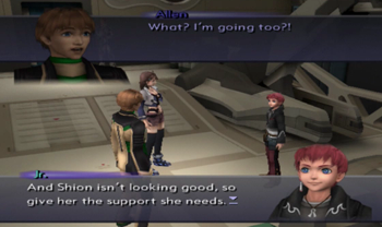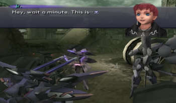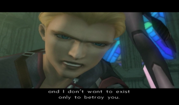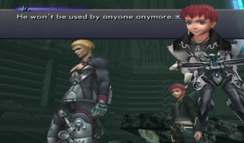 Voyager uncharacteristically softens the blow by pointing out that Junior and like half the party were engineered for specific purposes (Junior – weapon, KOS-MOS – weapon, MOMO – old man guilt).