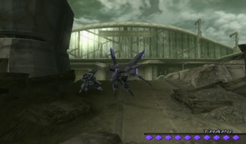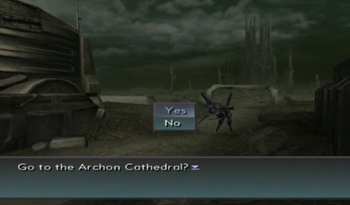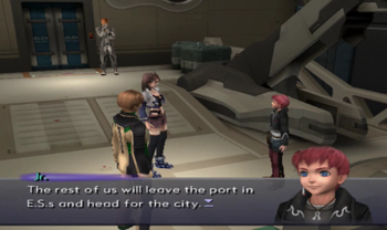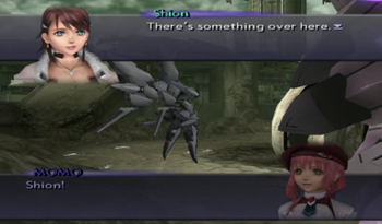 At one point you can exit the ESes to explore an extra area and find one dull treasure. I might be wrong, but I’m assuming this area was relevant to Pied Piper, because otherwise it’s just a completely random building/walkway leading to an uninteresting consumable. Then again, it’s Xenosaga, so who knows.